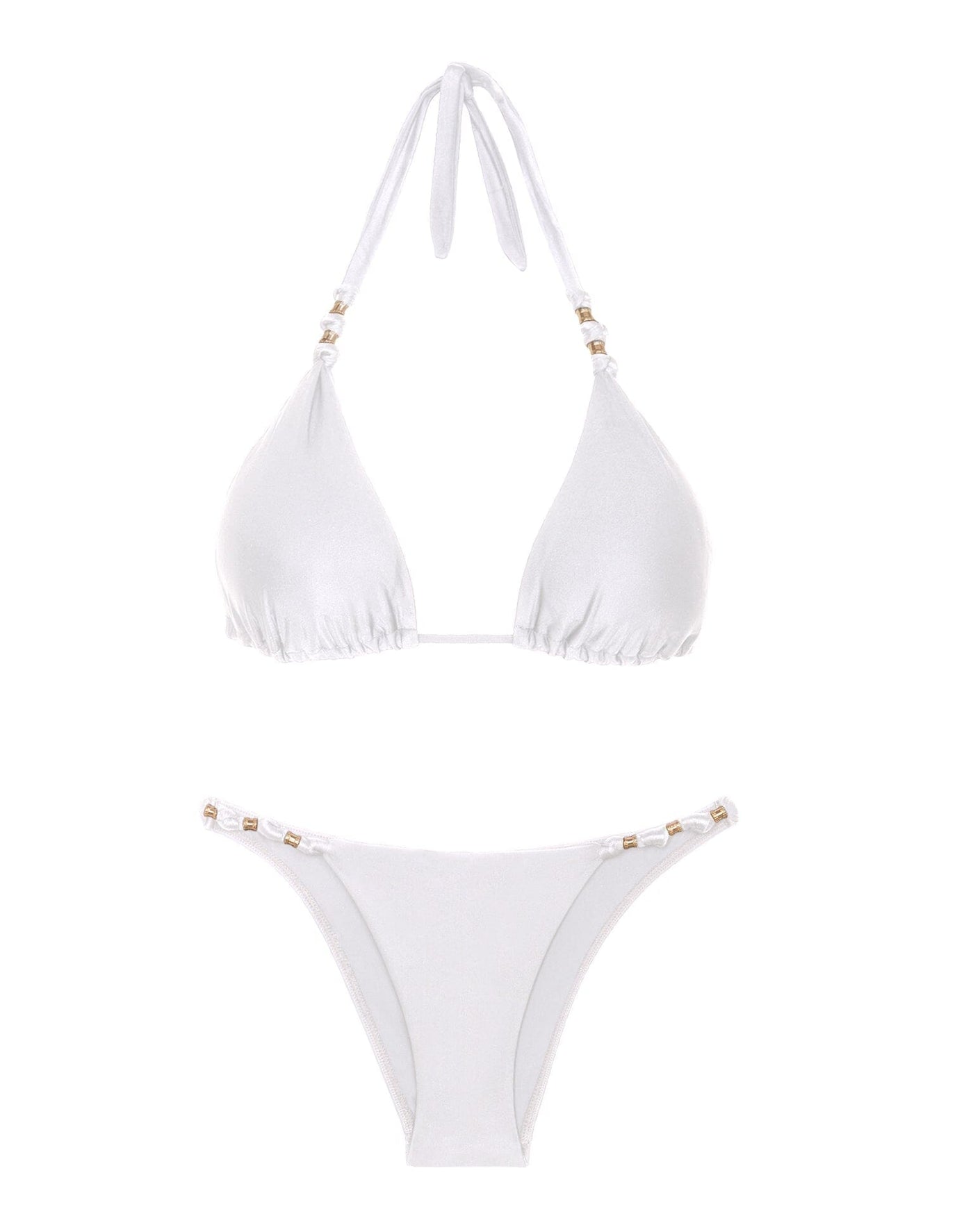 A classic triangle design meets the handmade details of knots intertwined with 24k gold accessories. A not-too-subtle detail that elevates your swimwear. Our founder and CEO developed this top with sophistication in mind, quickly turning it into an iconic ViX piece.